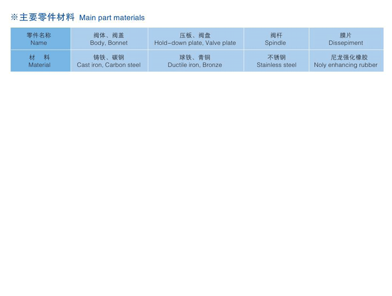 該閥采用雙室隔膜傳動機構替代活塞式,無運動磨損,壽命長。安裝在各類沉淀水池的底部壁外,用以排除池底的泥沙及污物。