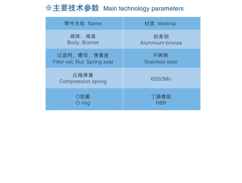 該閥為內(nèi)螺紋連接,由閥體、閥蓋、壓縮彈簧、閥桿及膜片等組成,內(nèi)部附有過(guò)濾網(wǎng)便于清除雜物。