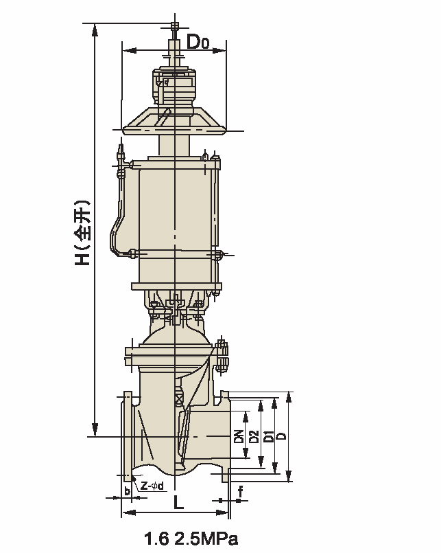 2、閘閥執(zhí)行器采用雙層氣缸結(jié)構(gòu),它與單氣缸式氣動(dòng)閘閥相比,提升力增大了一倍